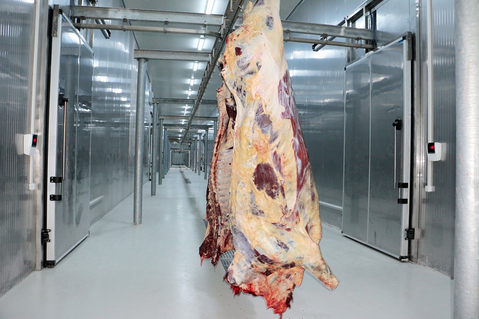 Büyük yapılı ve karkas kabuk yağı kalın olan karkaslar oldukça uzun yaklaşık 72 saat kadar ön soğutmayı gerektirir. Depoların soğutma kapasiteleri büyüklüklerine ve depolanacak karkas sayısına göre özenle saptanmalıdır. Tek bir büyük depo yerine, birkaç tane normal boyutlarda soğutma ünitesi yapılmalı ve yapılacak bu depoların boyutları 18-30 metre uzunluk, 7,5-15 metre ve 4.8 metre yüksekliğinde olmasına çalışılmalıdır. Raylardaki asılma çengelleri ile döşeme arasındaki mesafe sığır karkasları için 3.3 metre, 1⁄4 sığır karkasları için 2,2 metre, dana ve domuz için 2,7 metre, koyun ve keçi karkasları için ise 2 metre olmalıdır.